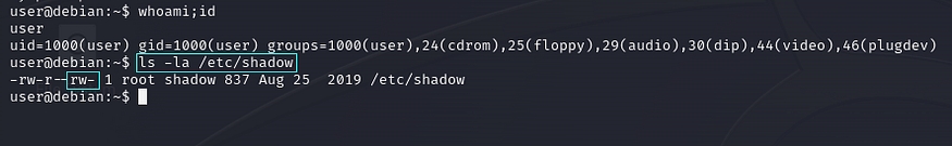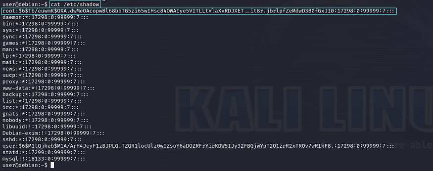 However, in our target machine, the /etc/shadow file misconfigured to be readable by all users in the system.
