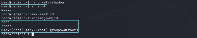 Once overwrite the custom-generate password into the /etc/shadow file, we can use the ‘su’ (switch user) Linux command to switch to the root user.