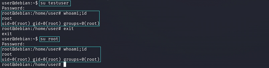 After replacing that custom generated password hash in /etc/passwd file. we can simply gain privileged user access using su (switch user) utility with username command like “su root” or “su testuser” with respective custom generated password.