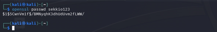 openssl passwd sekkio123